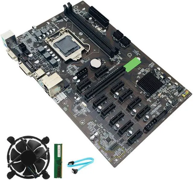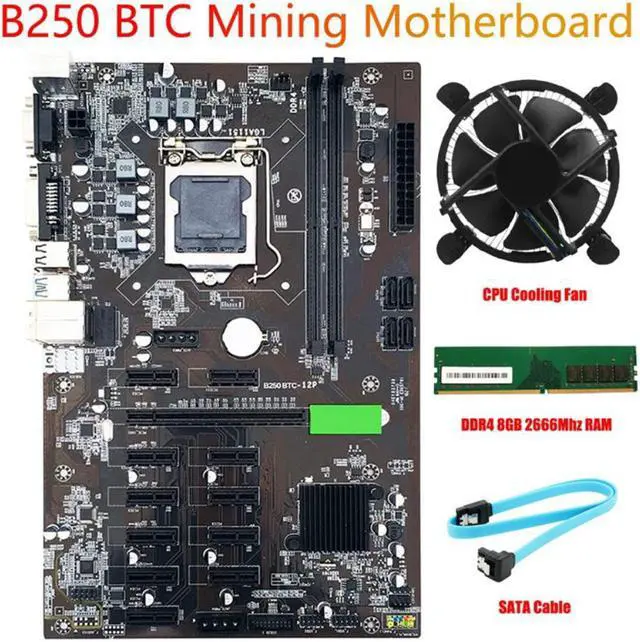 B250 BTC Mining Motherboard PCIe X1 PCI-E X16 LGA 1151 with DDR4 8GB 2666MHZ RAM +Cooling Fan+SATA Cable for Miner
