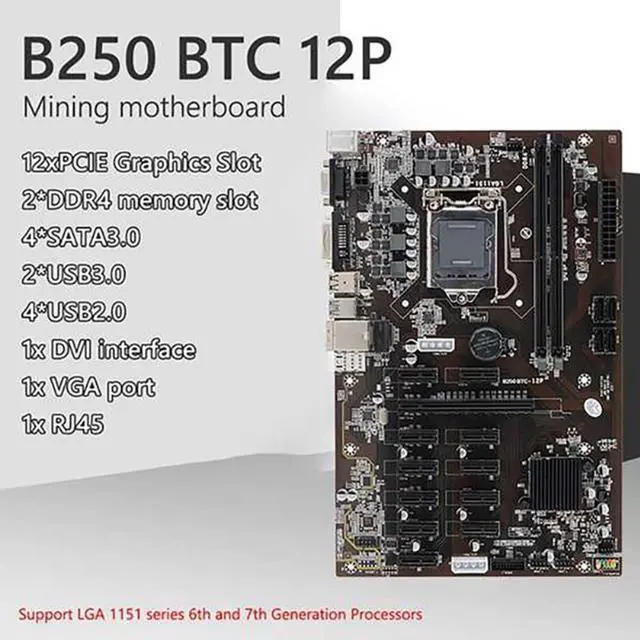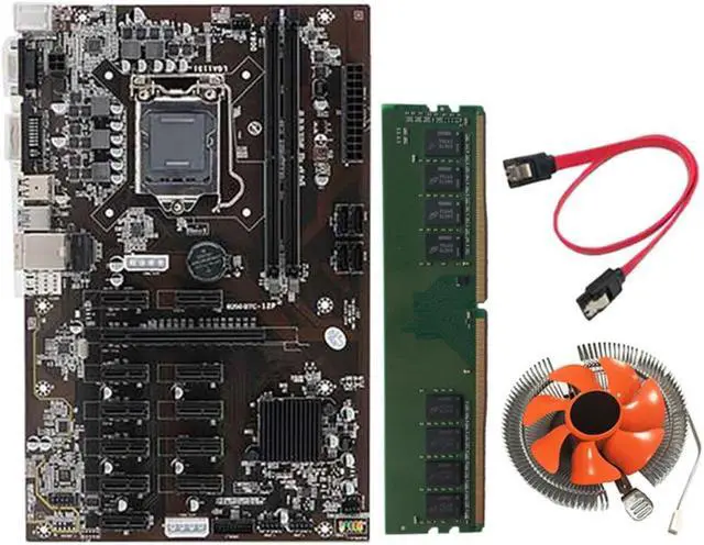 BTC B250 Motherboard 12 PCIE Graphics Slots LGA 1151 DDR4 RAM SATA3.0 USB3.0 Mining Motherboard with CPU Fan+8G DDR4 RAM