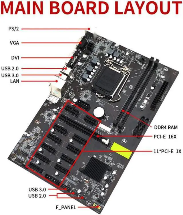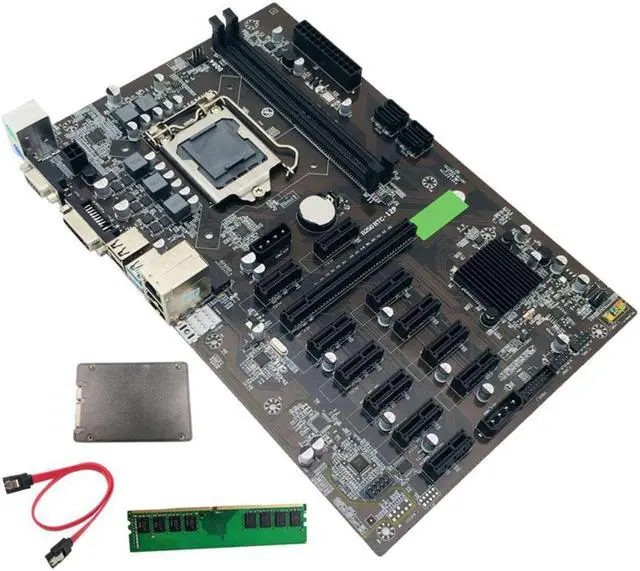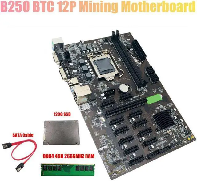 B250 BTC Mining Motherboard with DDR4 4GB 2666Mhz RAM+SATA 120G SSD+Cable LGA 1151 12XGraphics Card Slot for BTC Miner