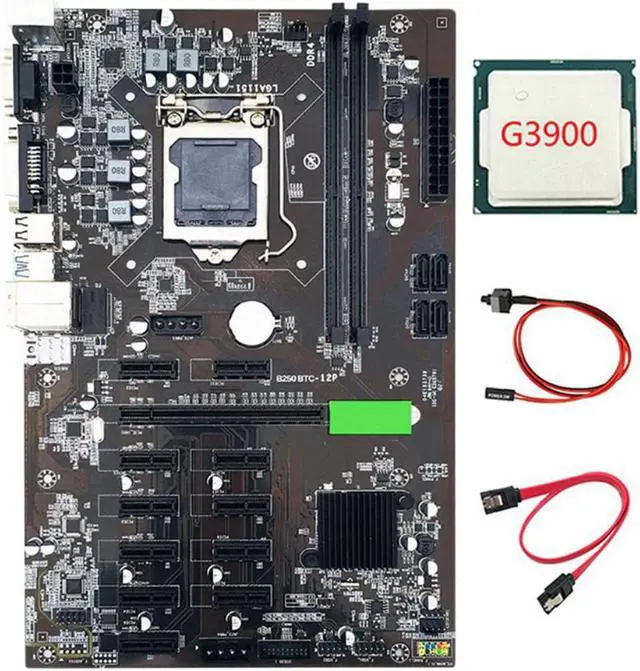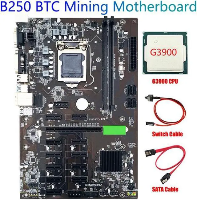 B250 BTC Mining Motherboard with SATA Cable+ Switch Cable+G3900 CPU 12 PCIE LGA1151 USB3.0 SATA 3 Support DDR4
