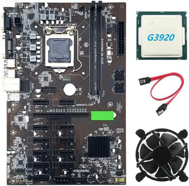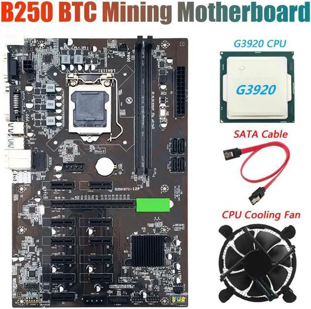 B250 BTC Miner Motherboard with G3920 CPU+Fan+SATA Cable 12XGraphics Card Slot LGA 1151 DDR4 USB3.0 for BTC Mining