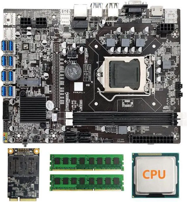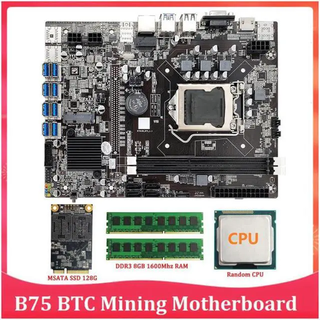 B75 BTC Mining Motherboard+Random CPU+2XDDR3 8GB 1600Mhz RAM+MSATA SSD 128G LGA1155 8GPU PCI-E to USB3.0 B75 ETH Miner