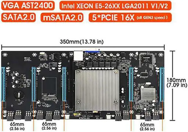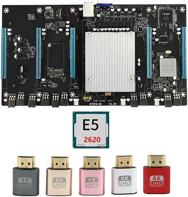 ETH79-X5 BTC Mining Motherboard with E5 2620 CPU+5XGraphics Virtual Display Adapter LGA2011 65mm DDR3 RAM 5 PCIE16X Slot