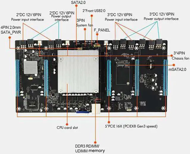 1. Provide 5 PCI-E slots, which can connect 5 graphics cards for mining.