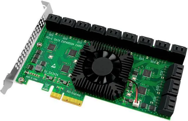 PCI-E 4X to SATA Expansion Card with 24-Port SATA3.0 6Gpbs Hard Drive Expansion Card for Mining with Cooling Fan