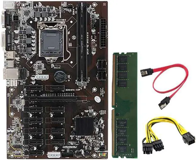 B250 BTC Mining Motherboard 12 PCIE Graphics Slot LGA1151 DDR4 RAM SATA3.0 USB3.0 with 8G DDR4 RAM+6 to 8Pin Power Cable