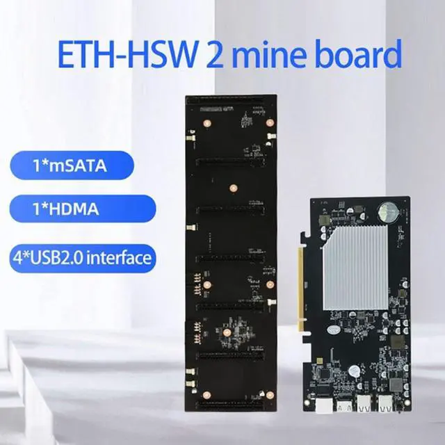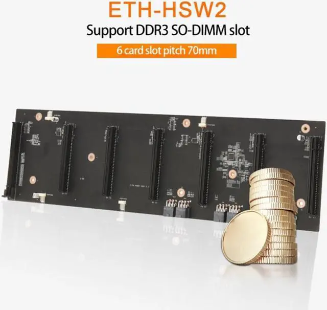 ETH-HSW2 BTC Mining Motherboard 6 Cards PCIE X16 Graphics Slot 70mm DDR3 DIMM MSATA USB 2.0 Motherboard with 8G DDR3 RAM