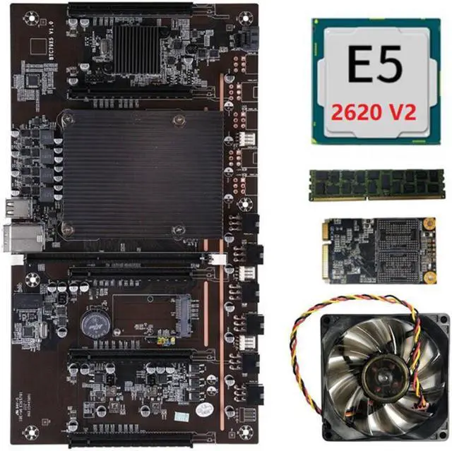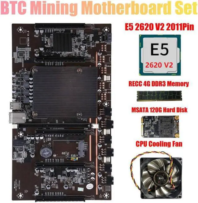 X79 BTC 5 Card Slot Mining Board +E5 2620 V2 2011 Pin CPU+RECC 4GB DDR3 Memory + MSATA 120G Hard Drive+CPU Cooling Fan Kit