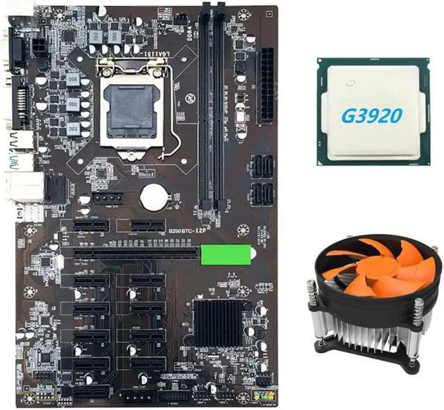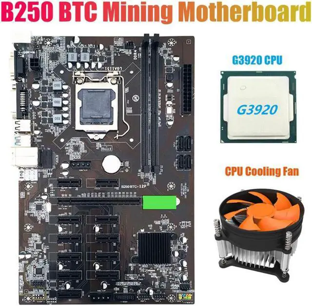 BTC B250 Miner Motherboard with G3920 CPU+Cooling Fan 12XGraphics Card Slot LGA 1151 DDR4 USB3.0 SATA3.0 for BTC Mining
