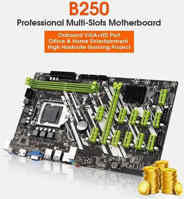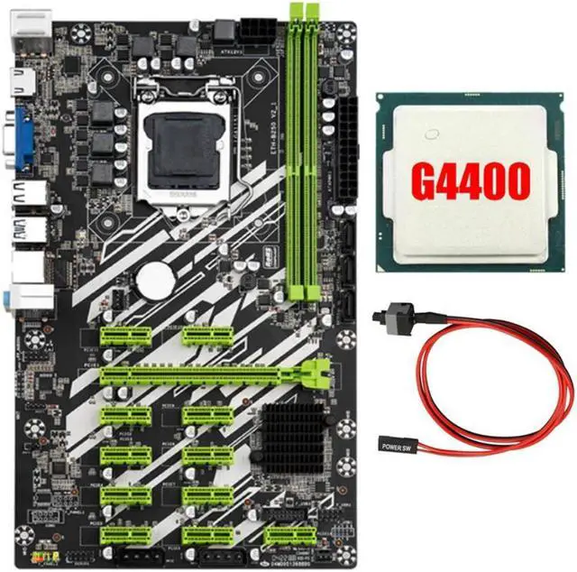 B250 BTC Mining Motherboard with 4400CPU+Switch Cable 12 PCI-E Slots LGA1151 DDR4 RAM SATA3.0 USB3.0 VGA+HD for BTC