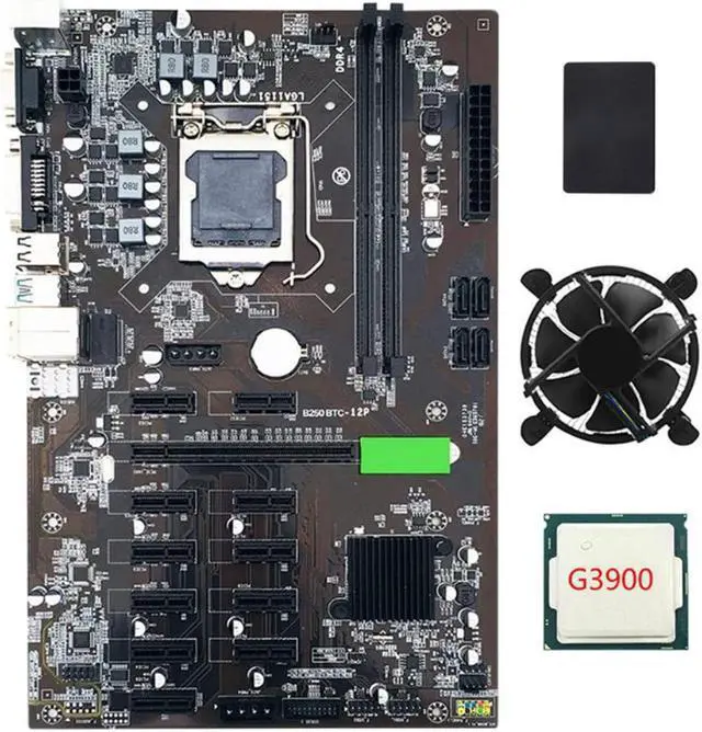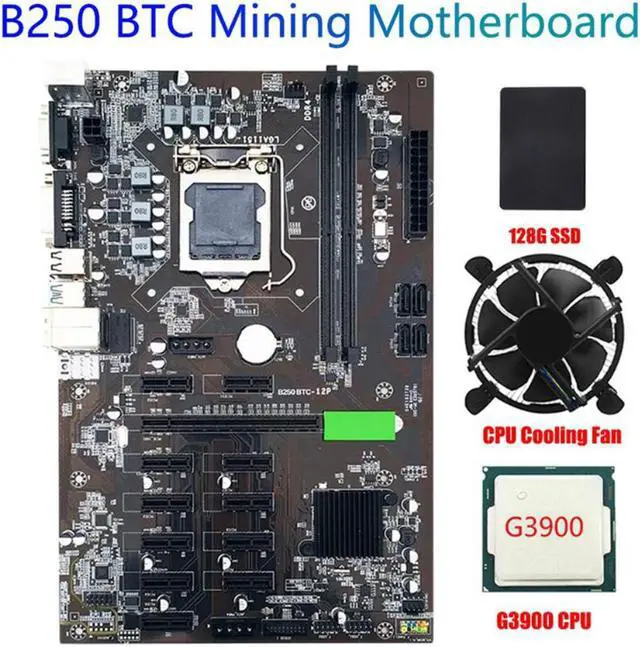 B250 BTC Mining Machine Motherboard USB3.0 SATA3.0 LGA1151 with SATA SSD 128G+G3900 CPU +Cooling Fan Support DDR4 VGA