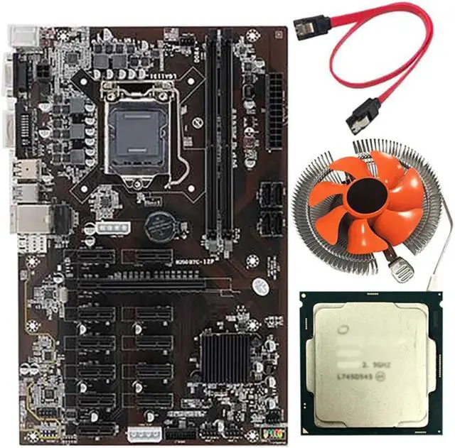 BTC B250 Mining Motherboard 12 PCIE Graphics Slot LGA 1151 DDR4 RAM SATA3.0 USB3.0 Equipped with G3930/G3900 CPU+CPU Fan