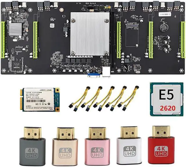 ETH79-X5B BTC Mining Motherboard with E5 2620 CPU+128G SSD+HD Virtual Display+Power Cord LGA2011 DDR3 RAM 5 PCIE16X 80mm
