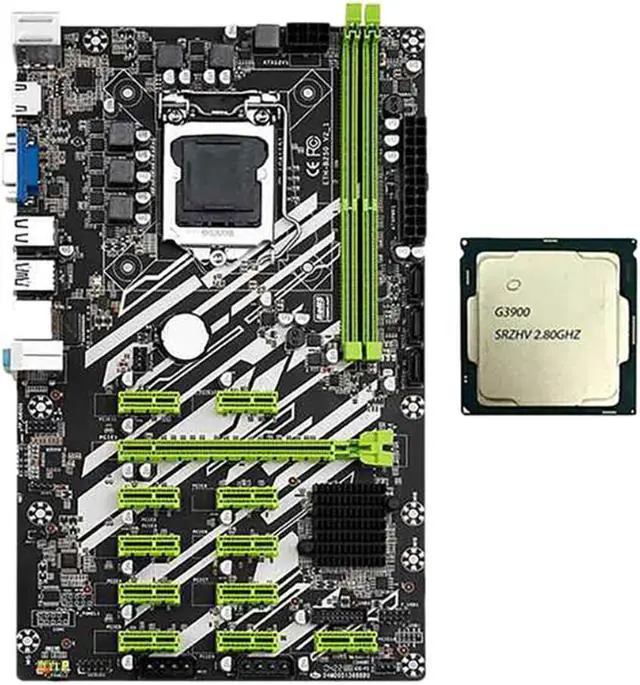 B250 BTC Mining Motherboard with G3900 CPU+SATA Cable 12 PCI-E Slots LGA1151 DDR4 RAM SATA3.0 USB3.0 Support VGA+HD