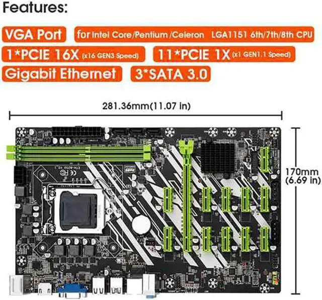 2. Supports 12 PCIe slots to maximize your mining connection and speed, up to 32GB DDR4 2666MHz RAM, USB3.0 Gigabit LAN