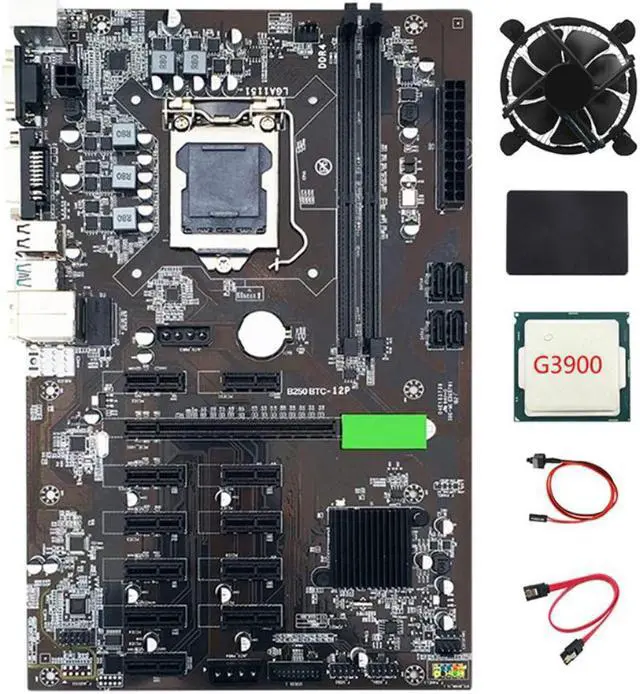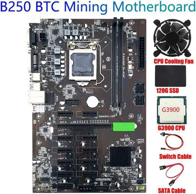 B250 BTC Mining Motherboard LGA1151 with SATA SSD 120G+G3900 CPU +Cooling Fan+SATA Cable+ Switch Cable Support DDR4 VGA