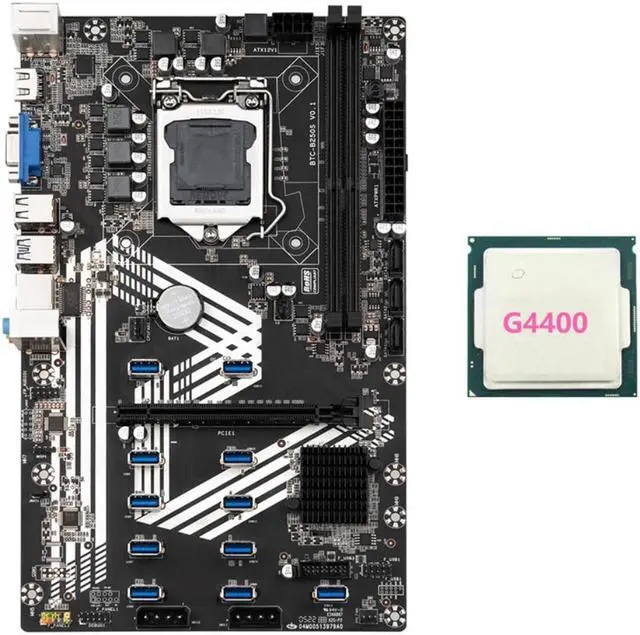 B250S BTC Mining Motherboard+G4400 CPU LGA1151 11XUSB3.0+1XPCIE 16X Slot DDR4 SATA 3.0 USB3.0 for ETH Miner Motherboard