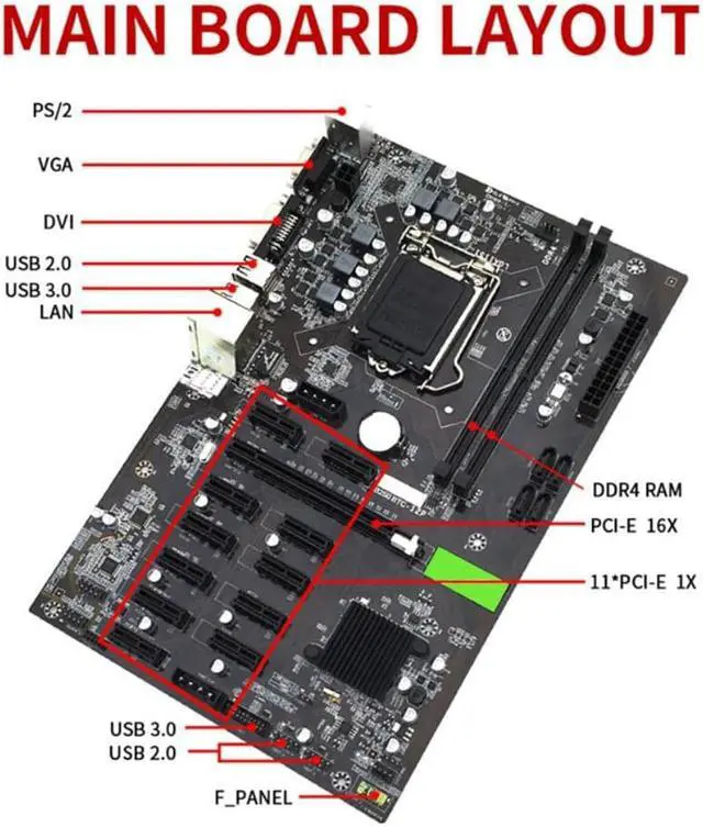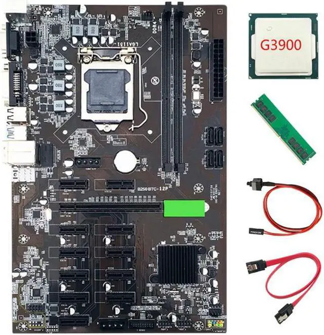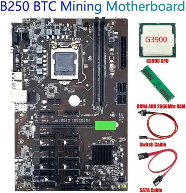 B250 BTC Mining Machine Motherboard LGA115112 16X Graph Card with DDR4 4GB 2666MHZ RAM+SATA Cable+Switch Cable+G3900 CPU