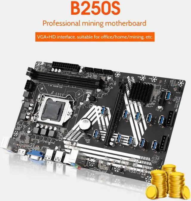 B250S Mining Motherboard+G3900 CPU+Switch Cable+SATA Cable LGA1151 11XUSB3.0+1XPCIE 16X Slot DDR4 ETH Miner Motherboard