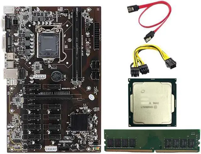 B250 BTC Motherboard with G3930/G3900 CPU+8G DDR4 RAM+6 to 8Pin Power Cable 12 PCIE Slot LGA1151 DDR4 SATA3.0 USB3.0