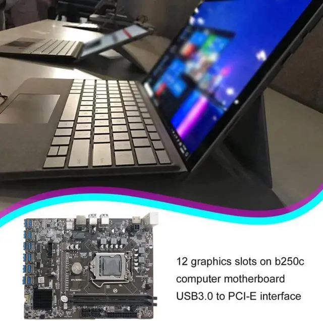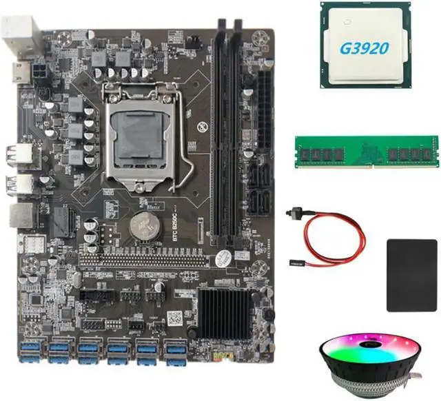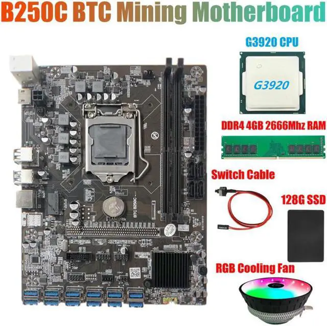 B250C BTC Miner Motherboard+G3920 CPU+RGB Fan+DDR4 4GB 2666Mhz RAM+128G SSD+Switch Cable 12XPCIE to USB3.0 GPU Card Slot