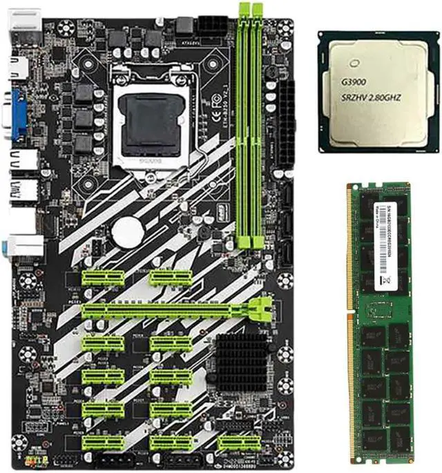 B250 BTC Mining Motherboard Set with G3900 CPU+8G DDR4 RAM+SATA Cable 12 PCI-E Slots LGA1151 DDR4 RAM SATA3.0 USB3.0