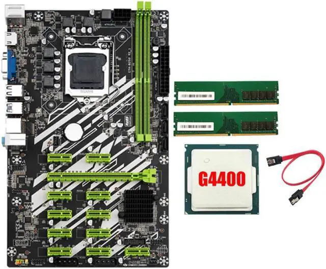 B250 BTC Mining Motherboard with 4400CPU+2 x 4G DDR4 RAM+SATA Cable 12 PCI-E Slots LGA1151 DDR4 RAM SATA3.0 VGA+HD