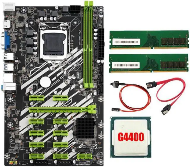B250 BTC Mining Motherboard with 4400CPU+2 x 4G DDR4 RAM+SATA Cable+Switch Cable 12 PCI-E Slots LGA1151 DDR4 RAM SATA3.0