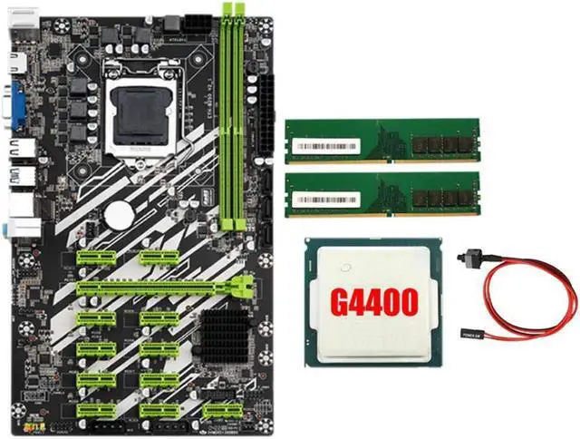 B250 BTC Mining Motherboard with 4400CPU+2 x 4G DDR4 RAM+Switch Cable 12 PCI-E Slots LGA1151 DDR4 RAM SATA3.0 VGA+HD