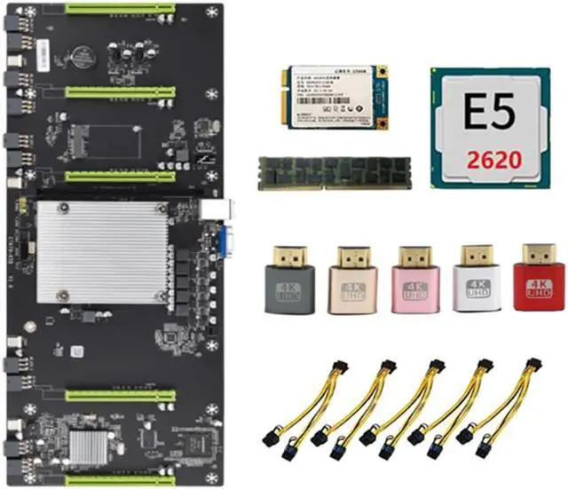 ETH79-X5B BTC Mining Motherboard with E5 2620 CPU+128G SSD+8G DDR3 RAM+Virtual Display+Power Cord LGA2011 5 PCIE16X 80mm
