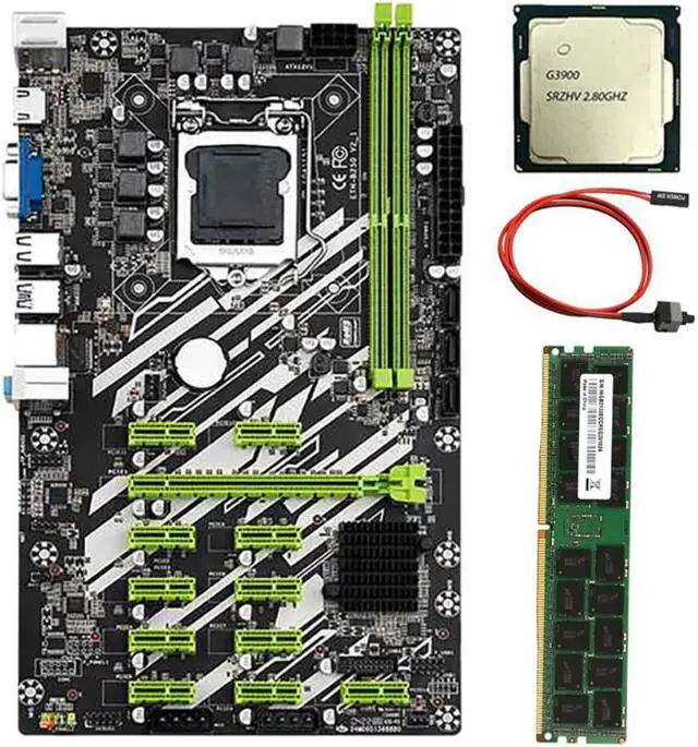 B250 BTC Mining Motherboard Set with G3900 CPU+8G DDR4 RAM+Switch Cable 12 PCI-E Slots LGA1151 DDR4 RAM SATA3.0 USB3.0