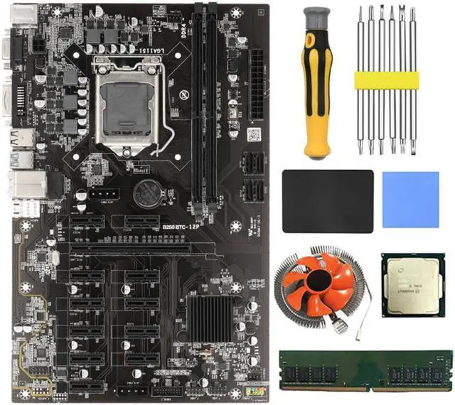 B250 BTC Mining Motherboard with G3900 CPU+8G DDR4 RAM+120G SSD+Fan+Thermal Pad+Screwdriver 12 PCIE Slot LGA1151 SATA3.0