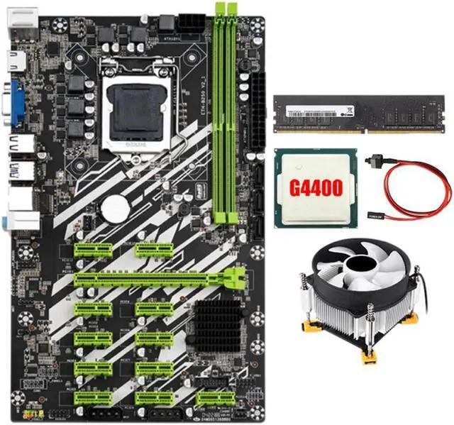 B250 BTC Mining Motherboard with 4400CPU+8G DDR4 RAM+Fan+Switch Cable 12 PCI-E Slots LGA1151 DDR4 RAM SATA3.0 USB3.0