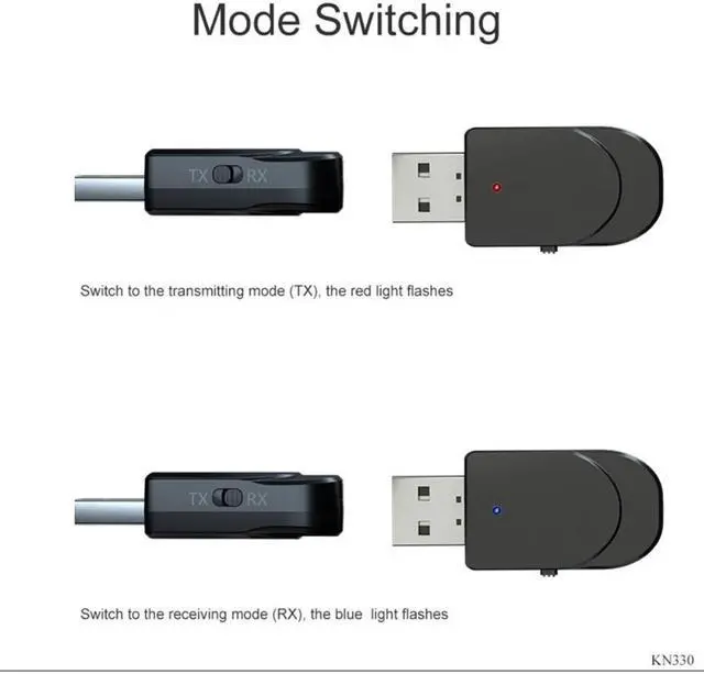 How to use: Switch to the transmitting mode (TX), the red light flashes, and the Bluetooth speaker or Bluetooth headset is turned on at the same time, it will be automatically paired. After the pairing is successful, the red light will be on.
