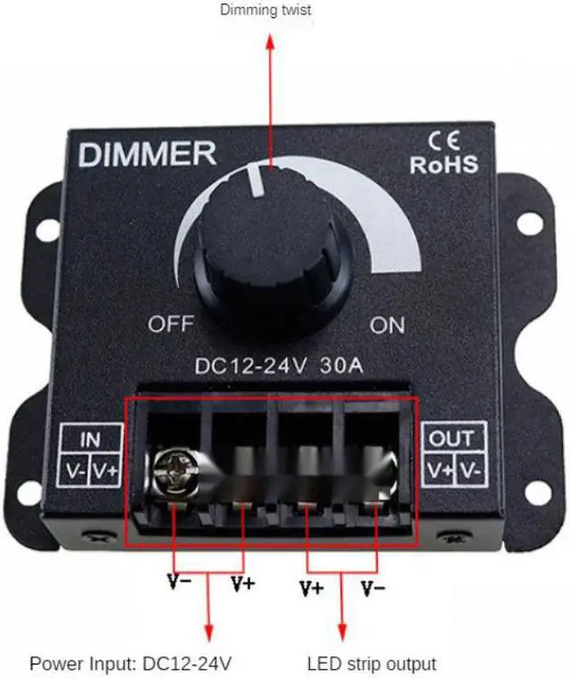 Black LED Dimmer DC 12V 24V 30A 8A Adjustable Brightness Dimmer Controller Switch for Lamp Bulb Strip Driver Single Color Light