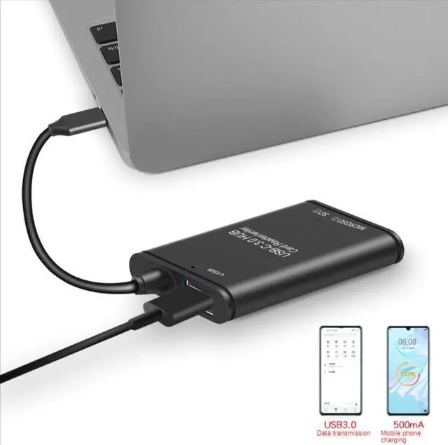 Product introduction: Connect to the computer through TYPE-C, carry out SD card/TF card data transmission, writing, and USB3.0 expansion. Support the mobile phone OTG function, view the data in the card on the mobile phone at the same time two-way transmission, play video, etc.
