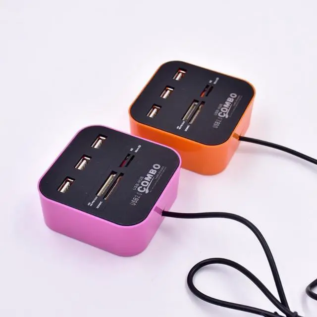 USB2.0 COMBO colorful all-in-one card reader HUB 3-port hub one drag seven extender splitter power adapter