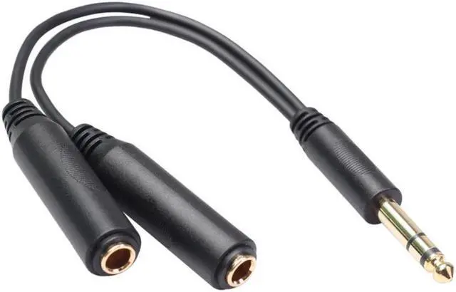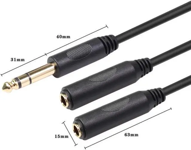 Product name: 6.35 stereo big three core one male two female audio adapter cable 3050-020