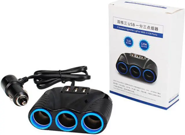 • 3 Way Auto Sockets Car Cigarette Lighter Adapter Lighter Splitter Lighter 5V 3.1A Output Power 3 USB Charger 120W
