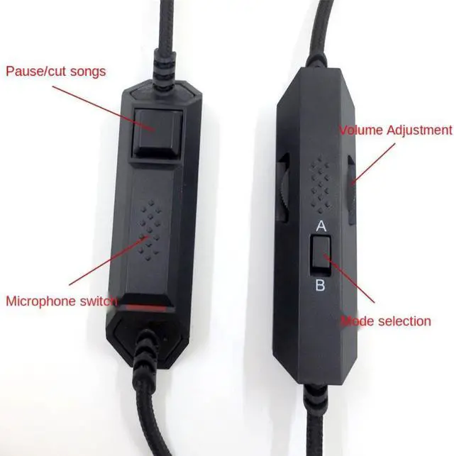 This line has two modes to switch, A mode uses the microphone on the headset, and B mode uses the microphone on the wire. Wire length 1 meter