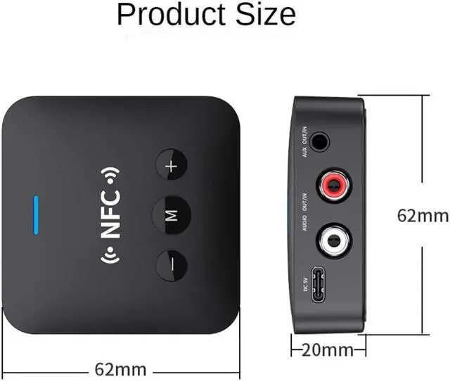 Bluetooth 5.0 Receiver Transmitter RCA Audio Receiver 3.5mm AUX Jack Music Wireless Adapter with Mic NFC for Car TV Speakers
