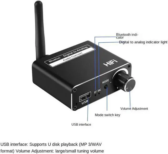 3in 1 Bluetooth receiver 5.0 digital to analog audio converter digital to analog USB playback aux adapter