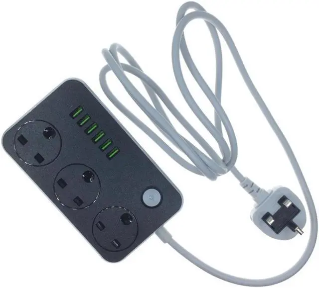 UK Plug 3.4A 6 USB Electrical Socket Extension Power Strip Charger Adapter 3 Outlet Surge Protection Switch Home