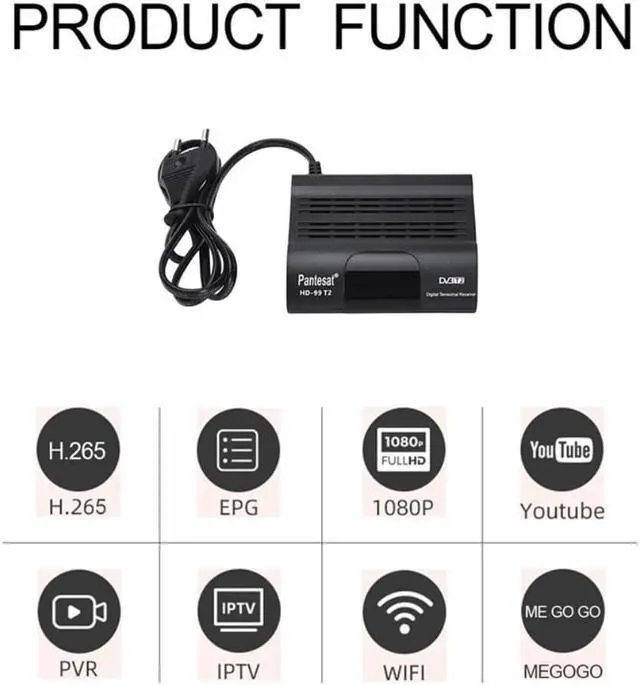 Kebidu FTA HEVC 265 DVB T2 Digital TV Tuner H.265 TV Receptor Full HD DVBT2 Set-top Box Wifi Receiver DVB-T Support Youtube