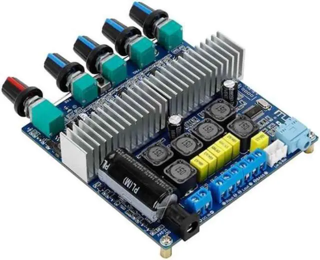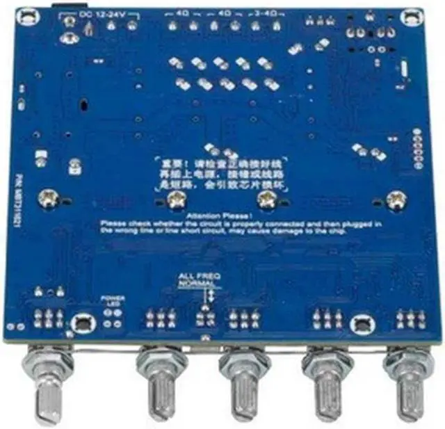 1. this is a 12-24V power supply with DC power supply, with TI's TPA3116D2 high-performance digital power amplifier chip as the core, one for parallel bridge bass channel power amplification output, and the other for left and right channel power amplification output . Support 100W (bass channel)+50W (left channel)+50W (right channel) three-channel output.