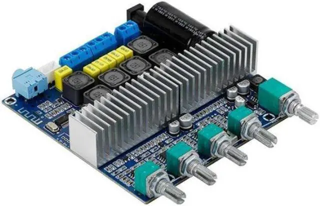 2. Support Bluetooth audio reception, external audio input interface, with preamplifier, bass crossover processing; bass volume, bass frequency, left and right channel volume, treble, function control switch/total volume, 5 adjustment potentiometers.