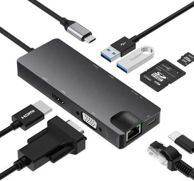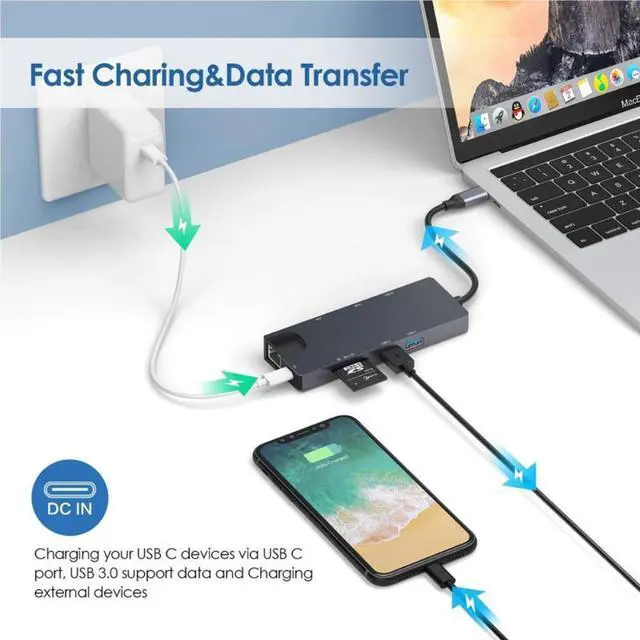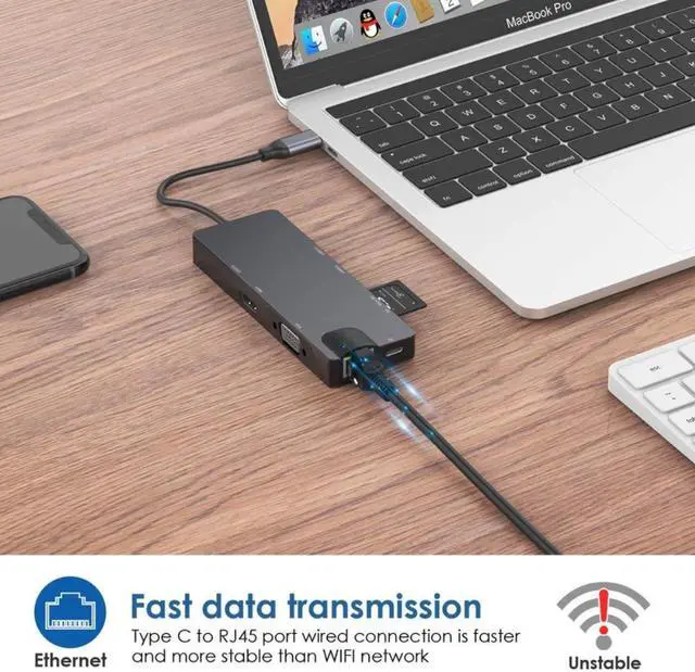 This converter can also support HDMI-compatible/VGA/USB HUB and charging port at the same time.