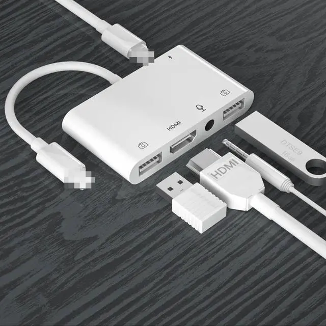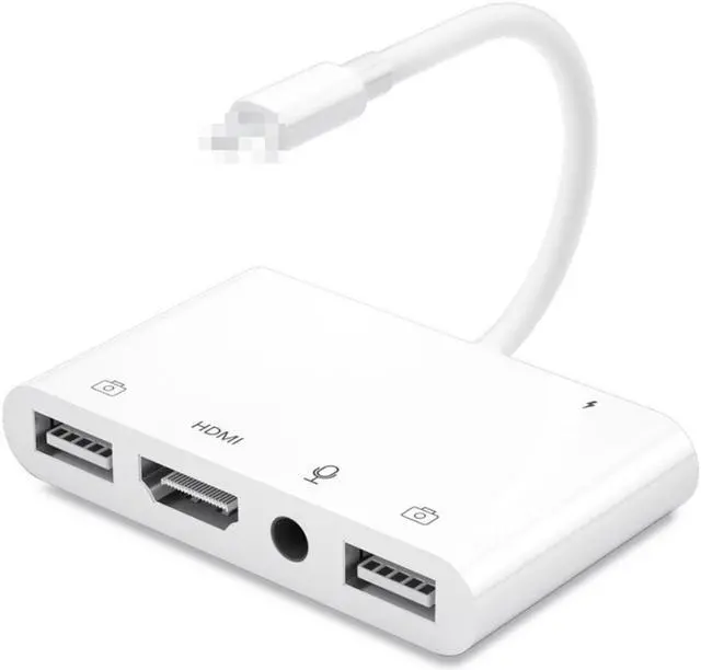 Lightning To Dual USB Hub HDMI-compatible Adapter 4K TV OTG Charging Microphone Audio Cable Aux Jack for IPhone12/11Pro/XS/ IPad