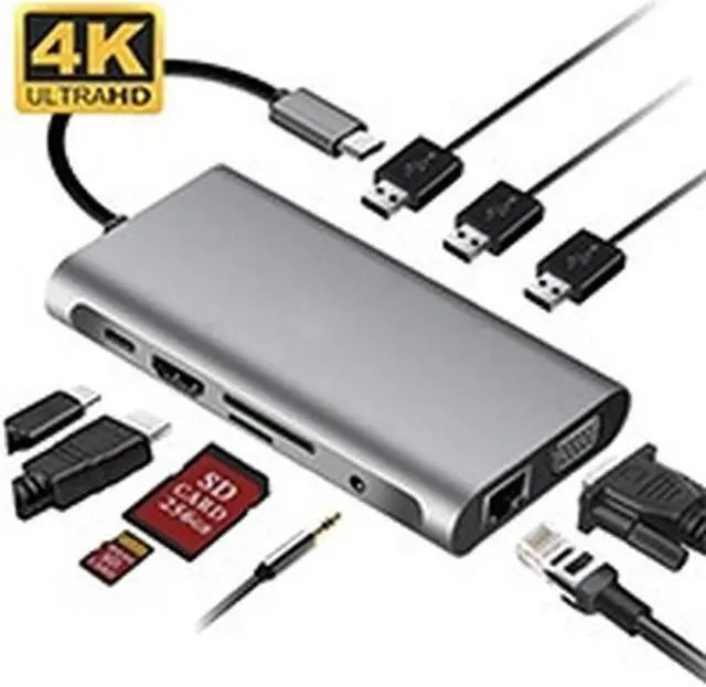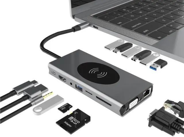USB C Hub 15-in-1 Type-C Hubs with Wireless Charging 4K HDMI Adapter USB3.0 SD/TF Card Reader USB-C Power Delivery 15In 1