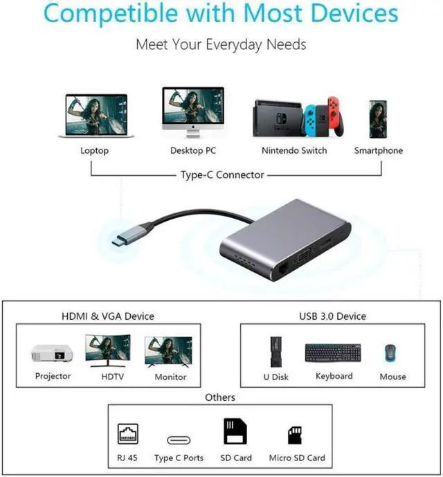 Suitable for all USB C devices, PC/tablet/mobile phone
